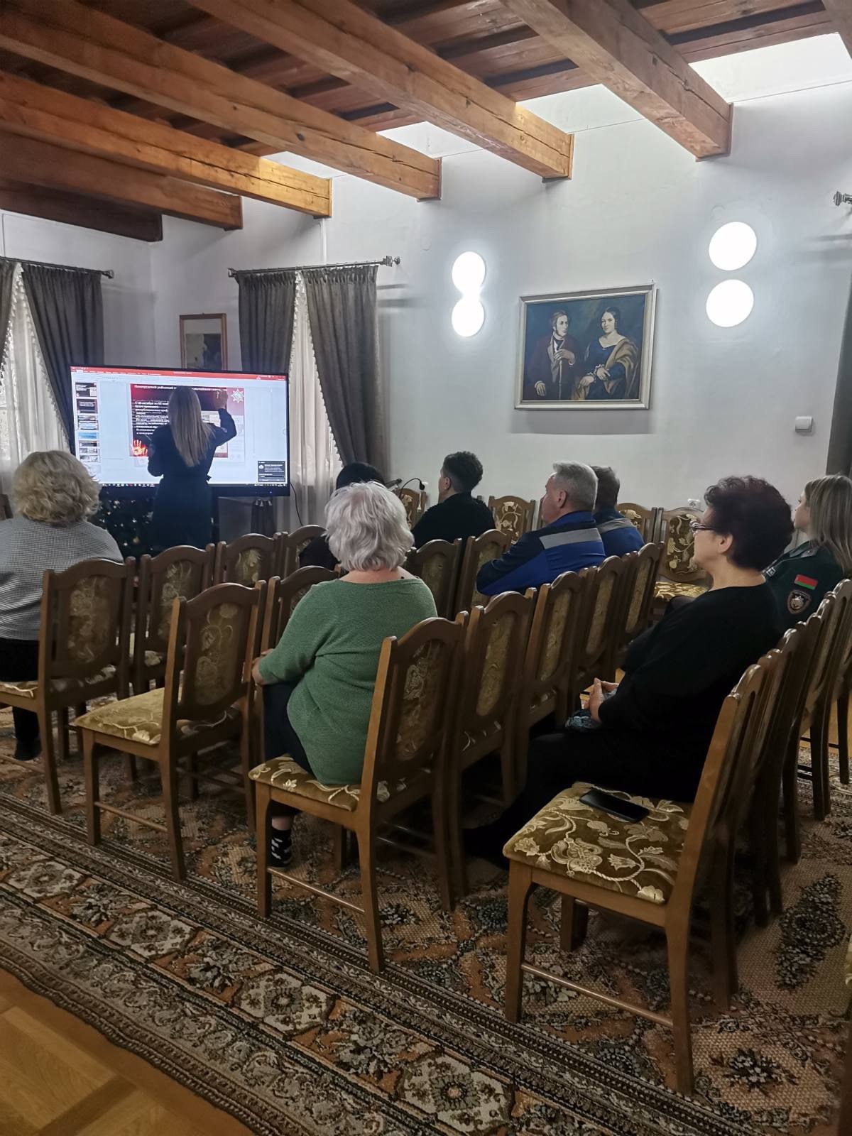 Сегодня в Доме-музее состоялась встреча с инспектором Новогрудского РОЧС Б.В. Поляковой. Специалист провела для сотрудников информативную лекцию о важности соблюдения правил пожарной безопасности.