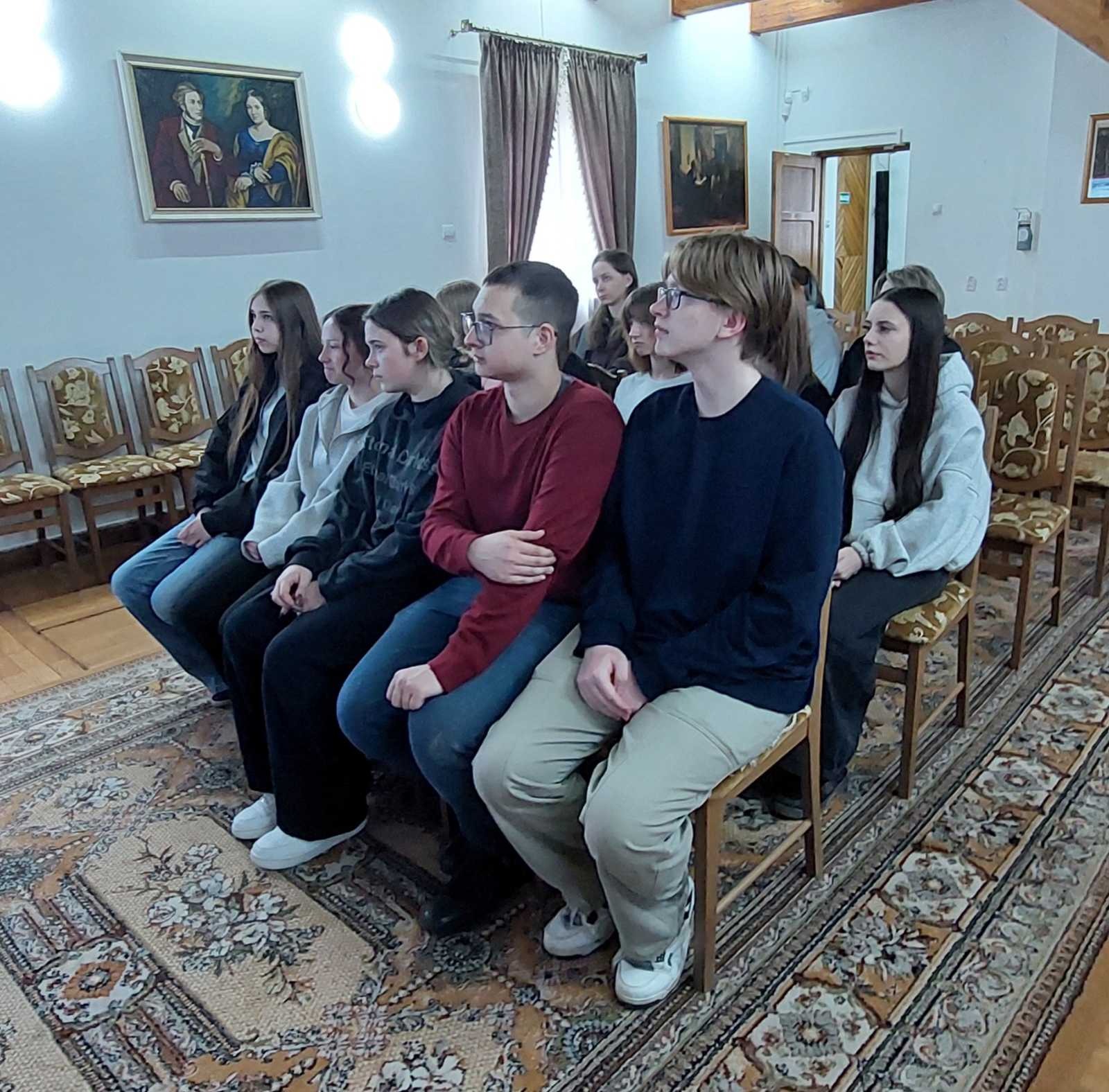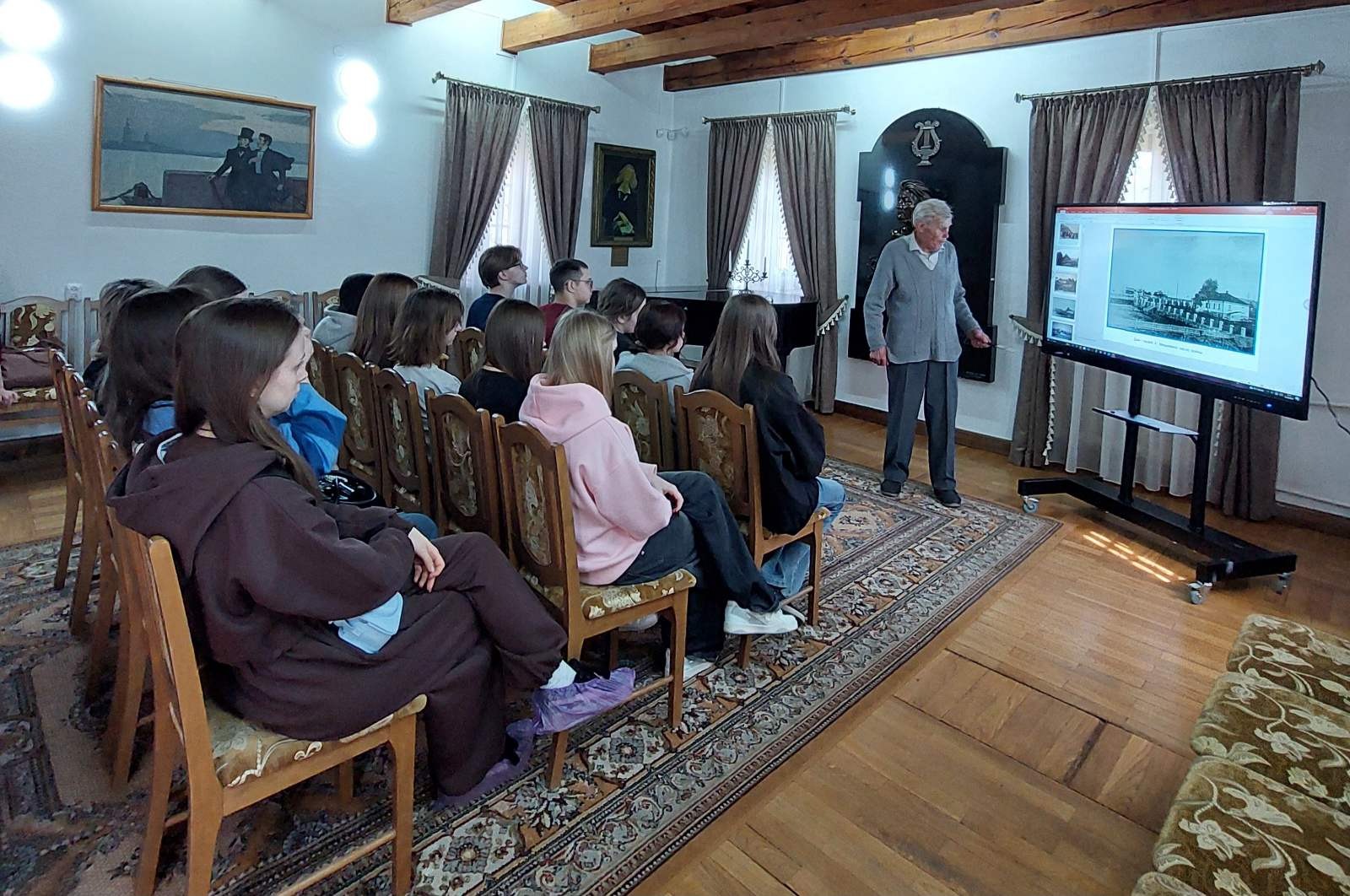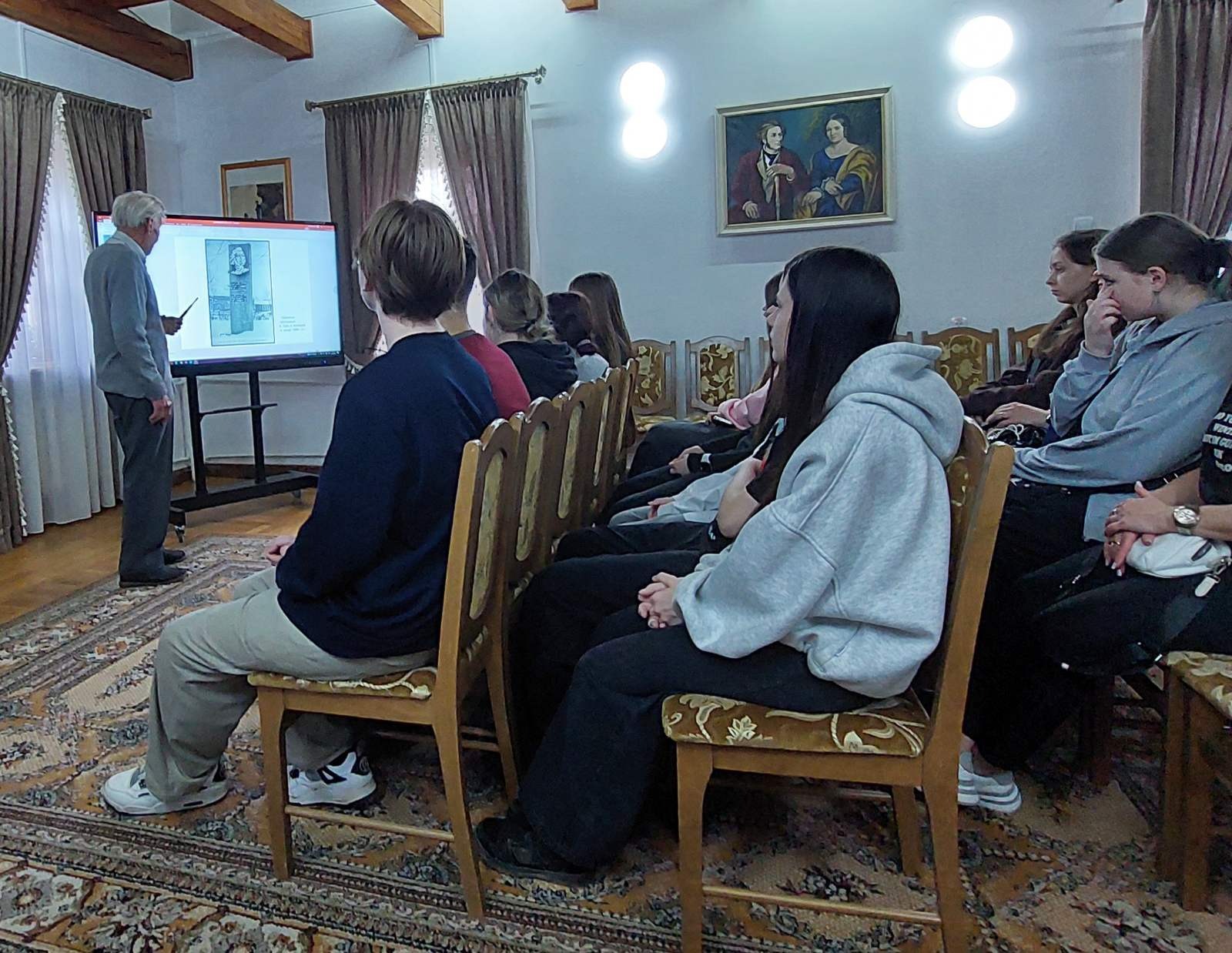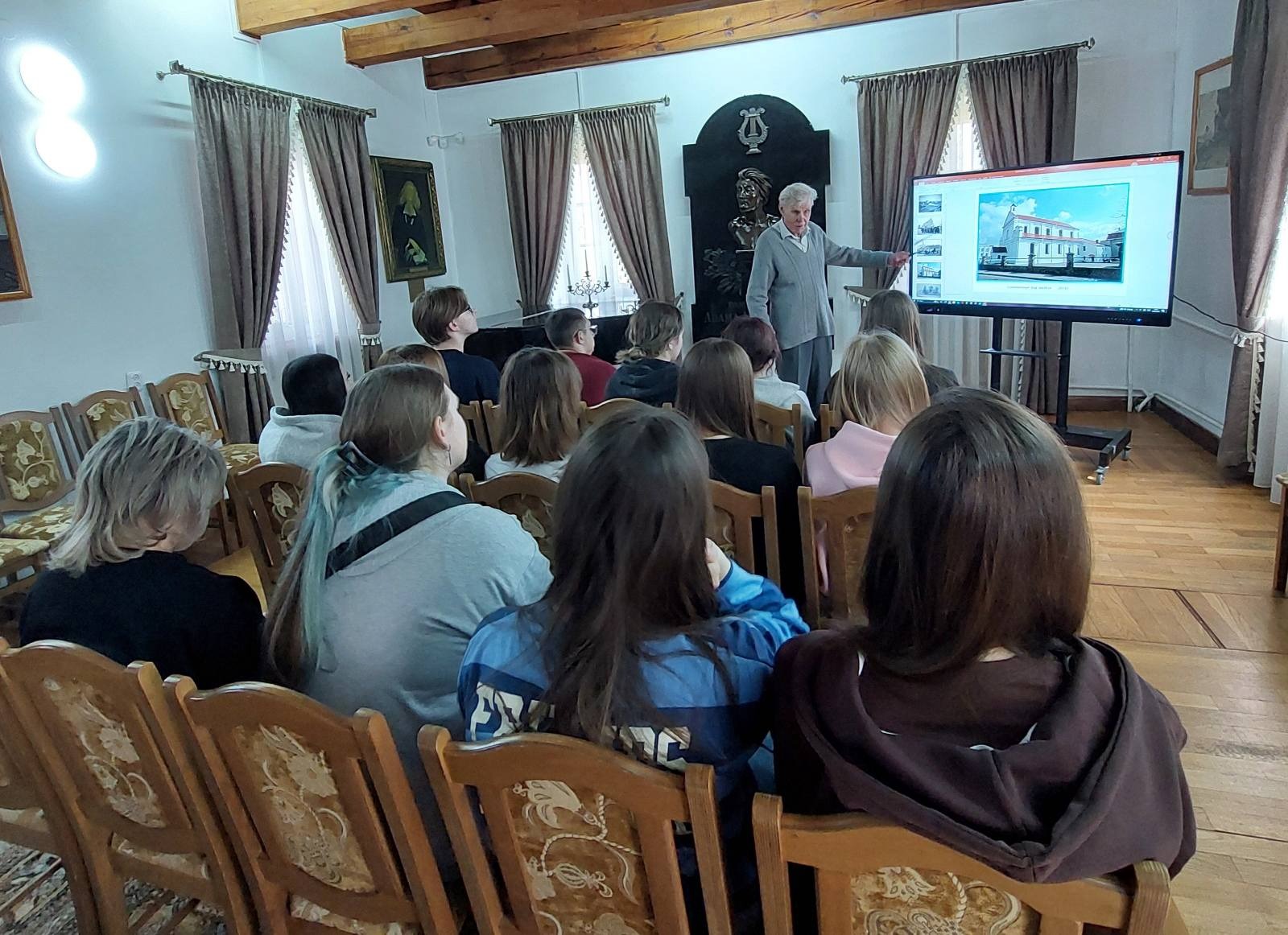 Ён расказаў студэнтам Навагрудскага гандлёва-эканамічнага каледжа аб памятных мясцінах Навагрудчыны, у тым ліку аб гісторыі вуліцы Міцкевіча, як яна выглядала ў розныя гады.