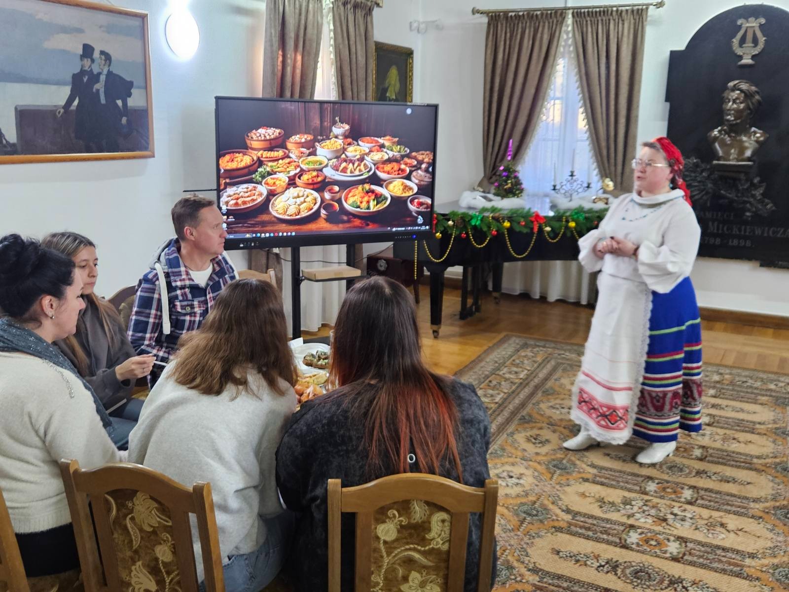 После театральной части мероприятия участников ждала дегустация белорусских блюд. Это был настоящий кулинарный праздник, где каждый мог попробовать традиционные угощения рождественских праздников. Сочетание искусства и гастрономии создало уникальную атмосферу, где все смогли насладиться прекрасными произведениями Адама Мицкевича, а также ощутить дух белорусской кухни. Праздник стал не только познавательным, но и вкусным!