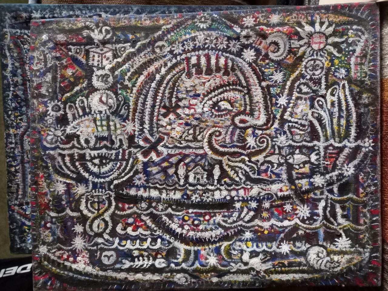 На выставке представлена серия работ, созданных художником в начале 2000-х годов. Первоначально выставка называлась «Новые знаки зодиака Язепа Дроздовича». Работы выполнены в жанре пуантилизм (от фр. point "точка"). Это направление в живописи, основанное на нанесении красок мелкими чистыми точками, которые оптически смешиваются в глазу зрителя, создавая яркие и вибрирующие цвета, в отличие от смешивания на палитре. Некоторые из работ вследствие техники получаются точечными.