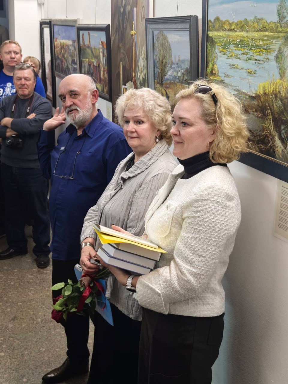 На прэзентацыі выстаўкі, якую наведалі дзесяткі навагрудчан, у тым ліку супрацоўнікі мясцовага тэлебачання і газеты, была добразычлівая сяброўская атмасфера. Выстаўка будзе працаваць да сярэдзіны красавіка. Запрашаем!